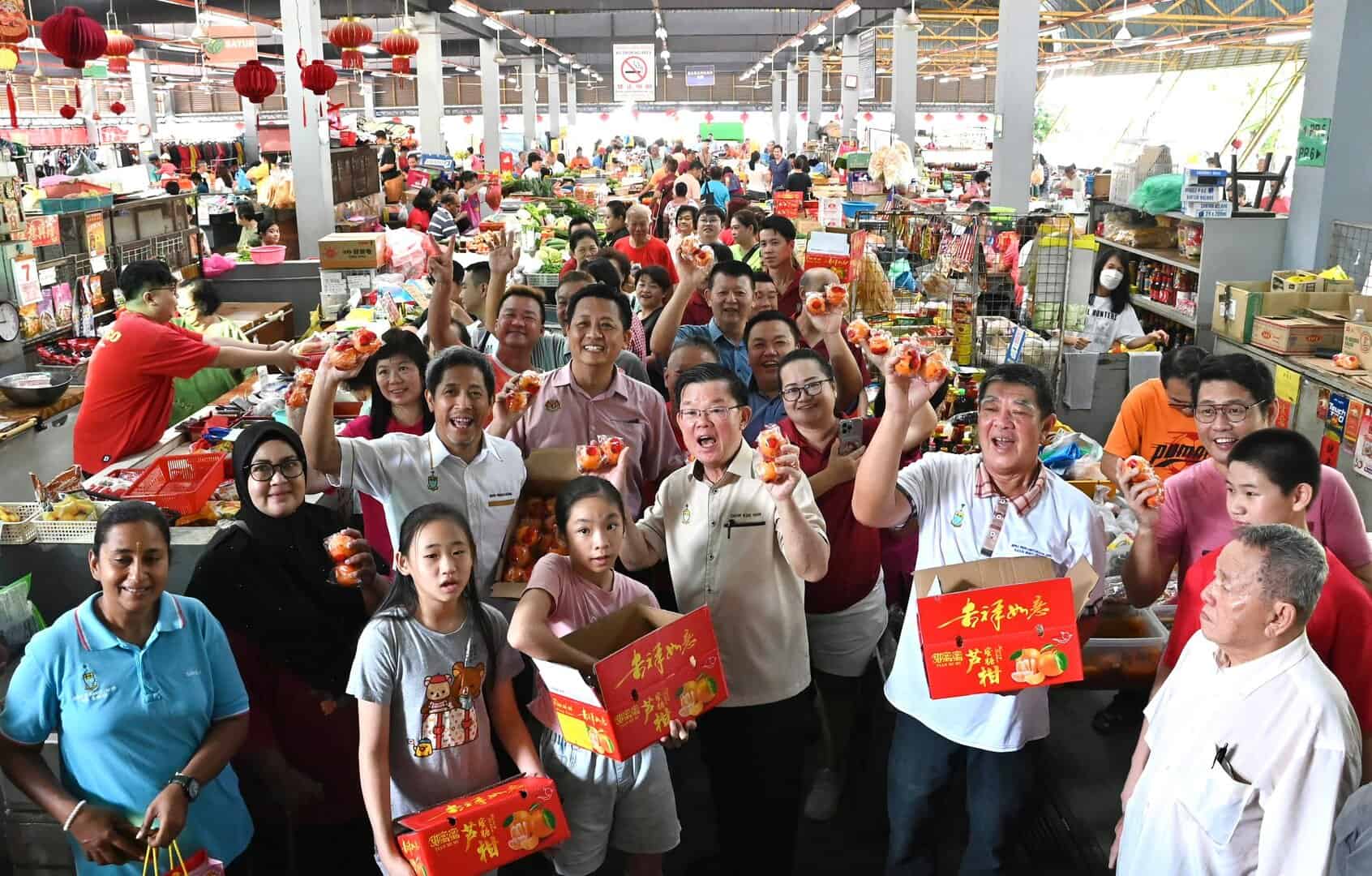 较后,首长一行人前往柔府村巴刹派送年柑予贩商及村民,传递新春的喜悦与祝福。