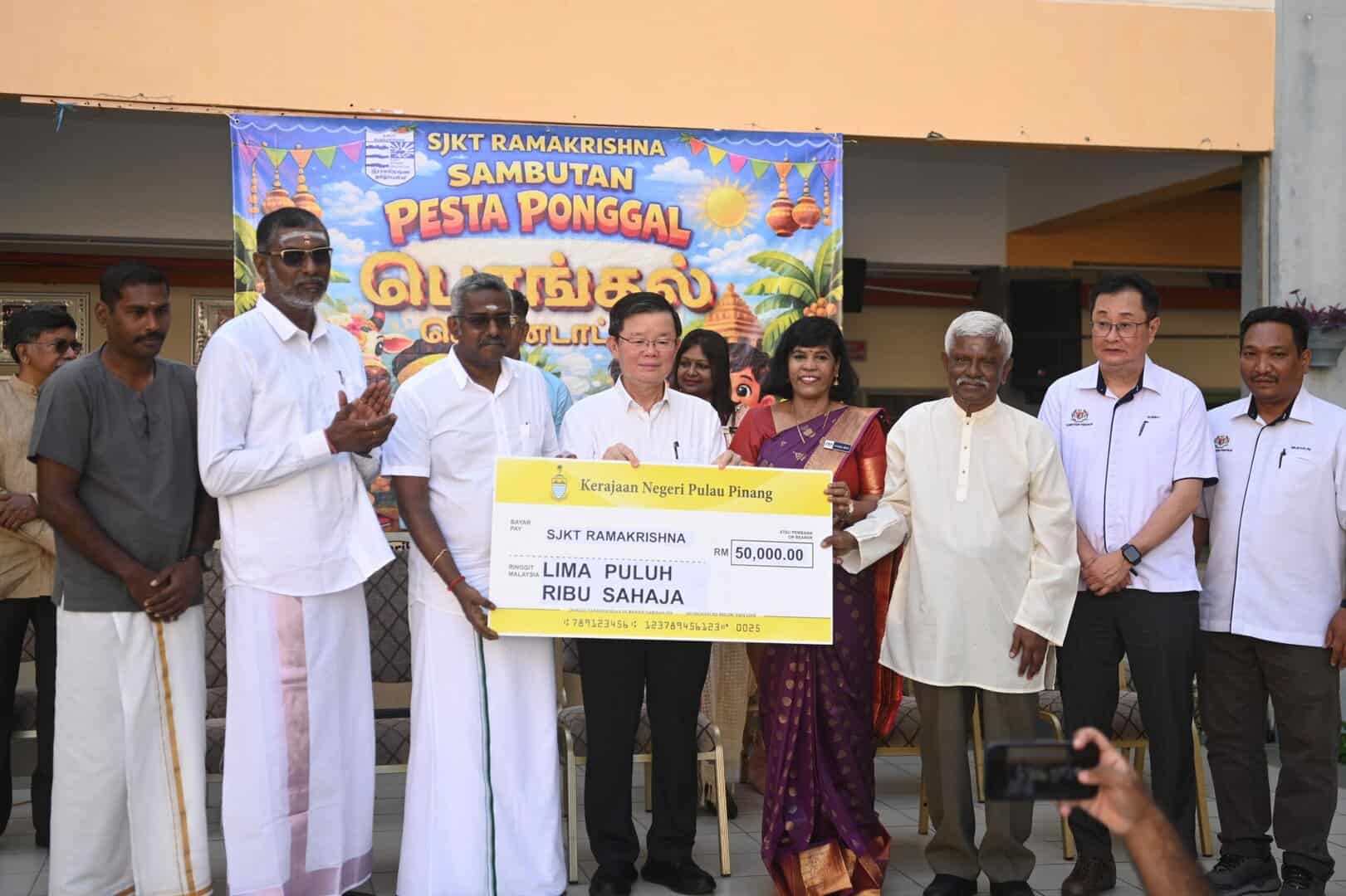 “இந்தப் பள்ளி மாணவர்களின் வசதிக்காக இரண்டு கூடுதல் வகுப்பறைகள் கட்டுவதற்காக இராமகிருஷ்ண தமிழ்ப்பள்ளி வங்கி கணக்கிற்கு ரிம50,000 நன்கொடையாக வழங்கப்படுவதை அறிவிப்பதில் மகிழ்ச்சி அடைகிறேன்,” என்று மாநில முதலமைச்சர் மேதகு சாவ் கொன் இயோவ் பொங்கல் விழா நிகழ்ச்சியில் கலந்து கொண்டு தெரிவித்தார்.