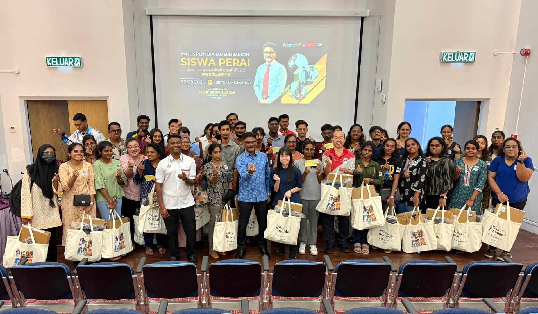 ஜார்ச்டவுன் – பிறை சட்டமன்ற உறுப்பினர் டத்தோ ஸ்ரீ சுந்தராஜூ உயர்க்கல்வி மாணவர்களுக்கு மடிக்கணினிகள் வழங்கும் முன்முயற்சி திட்டத்தின் கீழ் தகுதியான 42 மாணவர்களுக்கு இலவச மடிக்கணினிகள் மற்றும் நிதியுதவியை வழங்கினார்.