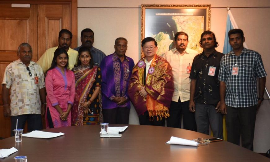 ஜோர்ச்டவுன் – ஸ்ரீ மகா மாரியம்மன் நற்பணி சங்கம் கொம்தாரில் அமைந்துள்ள பினாங்கு மாநில முதல்வர் அலுவலகத்திற்கு இன்று மரியாதை நிமித்தம் வருகை மேற்கொண்டனர். ஸ்ரீ மகா மாரியம்மன் நற்பணி சங்கத் தலைவர் திரு.சர்வேஸ்வரன், துணை தலைவர் திரு.குமரன், செயலாளர் திரு.முல்லைகுமரன், சங்க செயலவை உறுப்பினர்களான திரு.கருணாகரன் மற்றும் திரு.நாகலிங்கம் ஆகியோர்