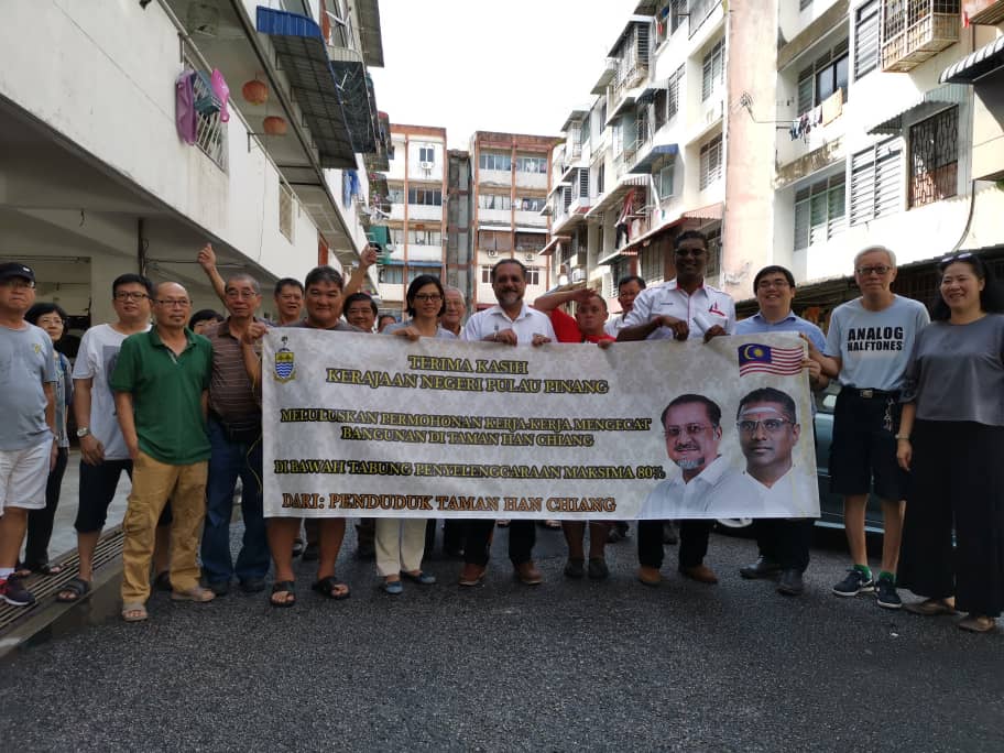 இக்குடியிருப்பாளர்கள் முதல் கட்ட சாயம் பூசும் திட்டத்திற்காக ஒரு சென் கூட செலவிட தேவையில்லை என தாமான் ஹன் சியாங் அடுக்குமாடி குடியிருப்பின் மேலாண்மை கழகம் குடியிருப்பாளர்களிடம் காசோலை எடுத்து வழங்கினார் ஆட்சிக்குழு உறுப்பினர் ஜெக்டிப் சிங் டியோ.