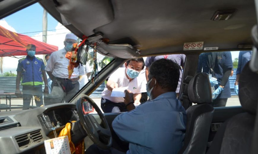 ‘டிரைவ் த்ரு வாயிலாக ஊக்கத்தொகை வழங்கும் திட்டத்திற்கு’ வருகையளித்து ஏறக்குறைய 40 ஓட்டுநர்களுக்கு பட்டர்வொர்த், அப்துல்லா அமாட் படாபி அரங்கில் வழங்கினார்.