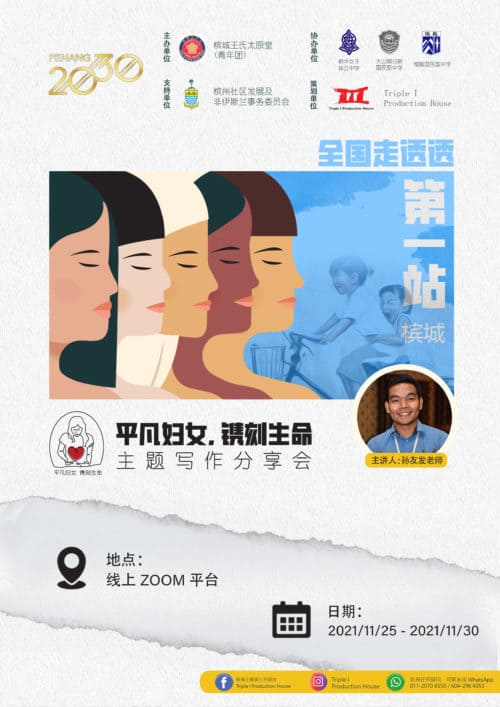为提倡年轻一辈主动发掘及感谢曾为自身生命作出贡献的女性,《平凡妇女,镌刻生命》线上主题写作分享会即将在全马六个州属举办,而槟州成为活动首站。