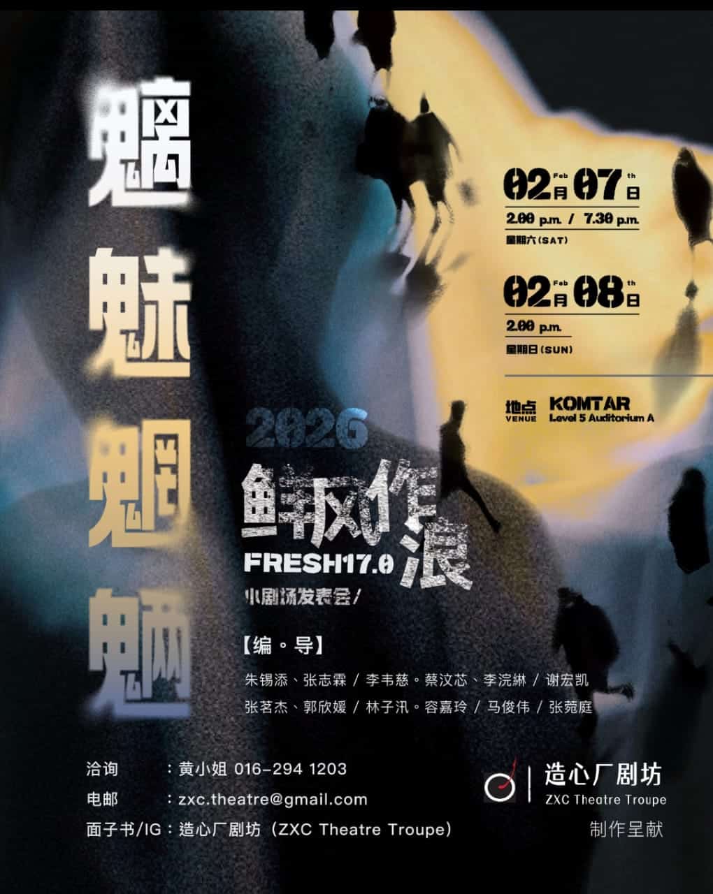 槟州政府致力推动文化艺术,州内艺术活动日益蓬勃,造心厂剧坊成立 35 周年纪念活动之一,由造心厂制作呈献的年度小剧场创作平台《鲜风作浪》,今年迈入第17届,将于 2026年2月7日至8日 在 槟城光大(KOMTAR)五楼 Auditorium A 举行,共呈献七部原创小剧场作品。