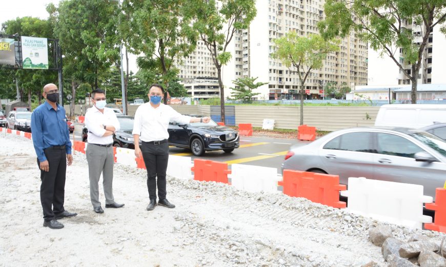 槟城五条路填地 (Gat Lebuh Macallum)与敦林苍祐大道交界处道路提升工程,预计将在4月中旬竣工。