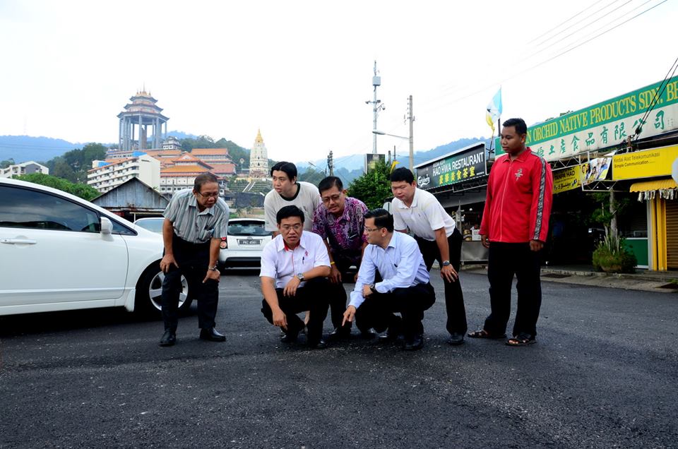 “其中一项使到道路出现坑洞的是国能及各电讯公司在当地进行地底电缆工程后没有做好善后工作,才导致了路面出现坑洞。巴刹路到栳栲街一带靠近巴刹及极乐寺,除了是游客聚集点,还是当地居民常使用的道路,所以这项重铺沥青的工程只花了三个晚上就竣工,效率十分之迅速。”
