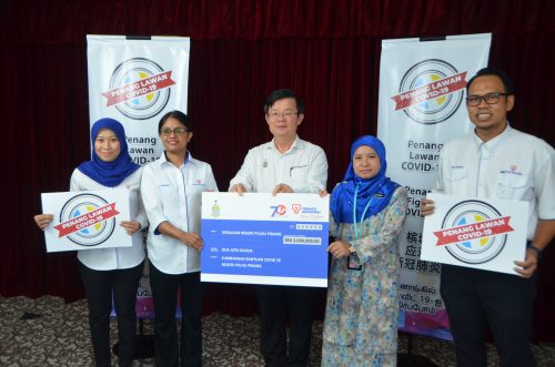 槟州政府今天获得国家能源有限公司(TNB)捐赠200万令吉,以购买医疗及临床设备。由国能公司经理(槟城-企业伙伴)诺莎莉扎娃蒂、阿都马南,及客户服务部主任阿南达代表移交。