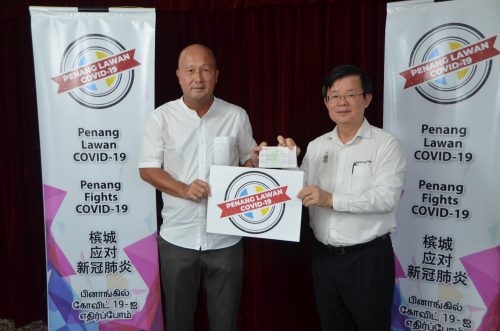 槟州政府也移交1万片口罩予医生协会(Medical Proctitioner’s Society ),由会长西华古玛医生及代表巴米星医生接领。