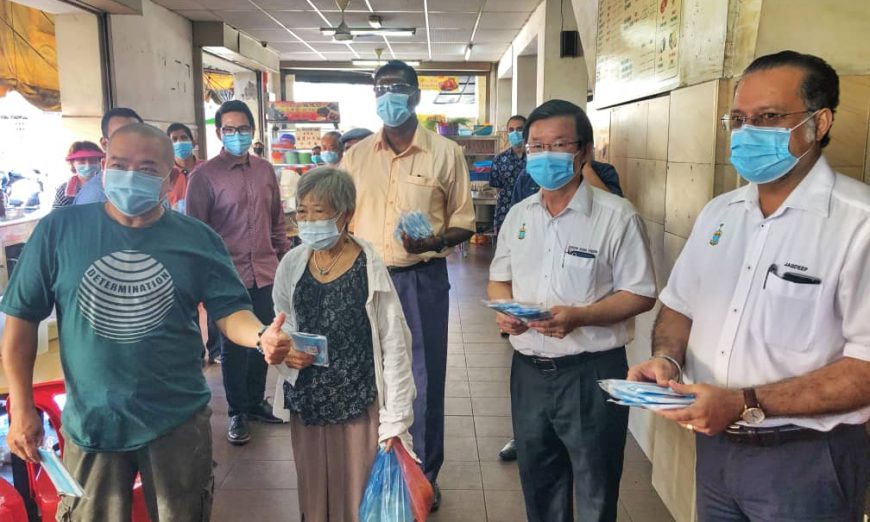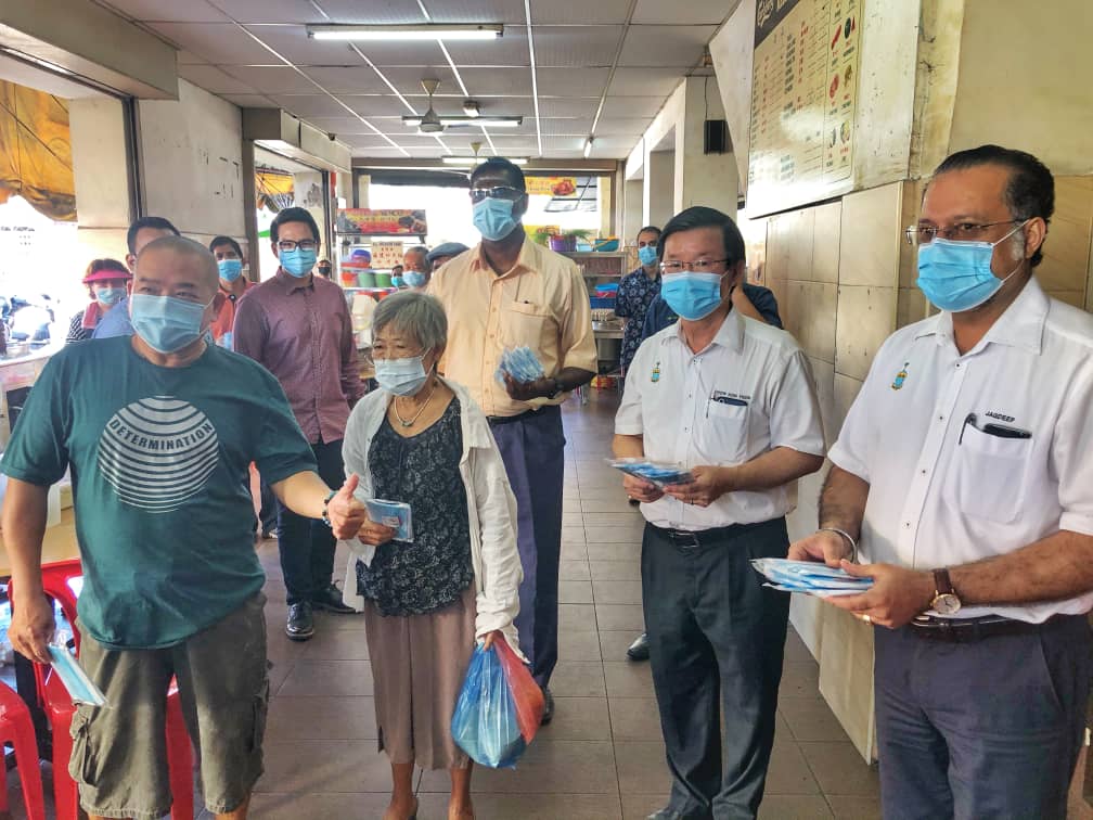 首长是在柑仔园州议员佳日星、日落洞国会议员雷尔、首长政治秘书郑来兴、槟岛市政厅秘书安南陪同下,前往派口罩及聆听小贩心声。