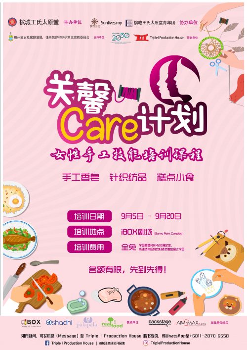 上述“关馨CARE计划”是由槟城王氏太原堂为主办单位、阳光生命Sunlives.my及槟城王氏太原堂青年团为协办单位、槟州妇女及家庭发展、性别包容和非伊斯兰宗教委员会为支持单位,Triple I Production House为策划单位。