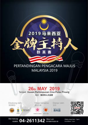 槟州华人大会堂举办全马首个主持类竞赛“2019年马来西亚金牌主持人群英赛”,发掘主持界的人才,并提供平台予年轻主持人交流学习。