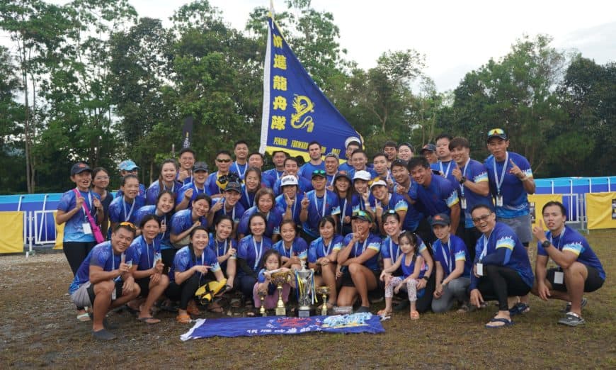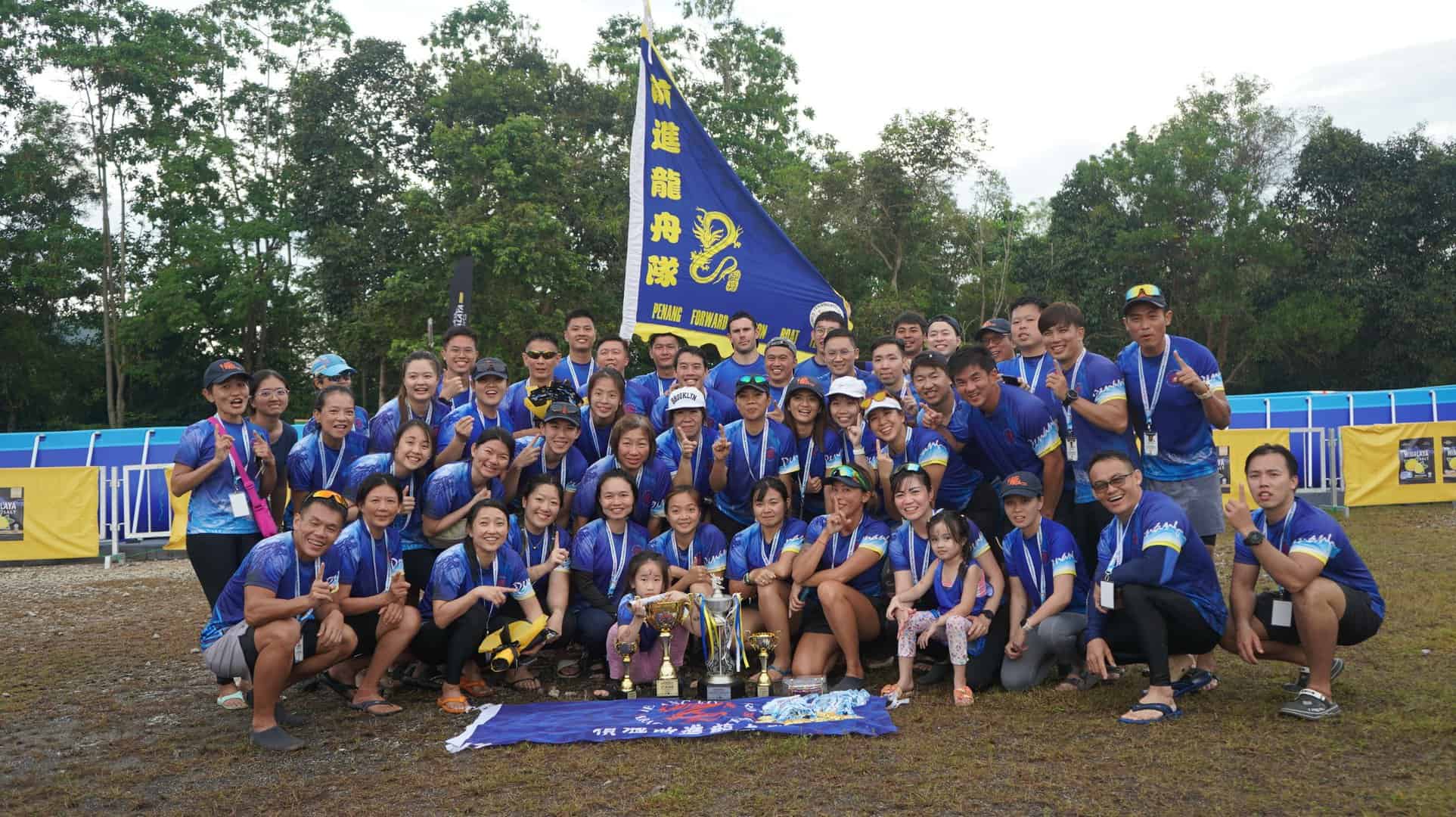 在槟城国际龙舟赛,前进体育会在400米男女混合赛乘风破浪,奋勇作战,勇夺挑战杯,为前进争光。