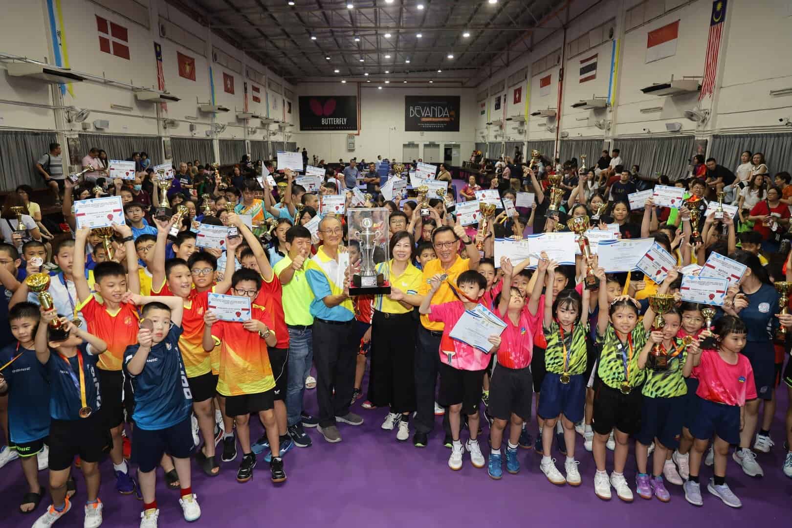 第5届槟州首长杯校际乒乓锦标赛日前圆满落幕,今年赛事反应超前热烈,共吸引 288 支队伍、705 名球员及 80 所学校参与,创下历年来的新高。经过两天选手们在球场上的奋勇拼搏及全力冲刺后, 各组别奖项尘埃落定,由来自北海的励华小学夺得全场总冠军。