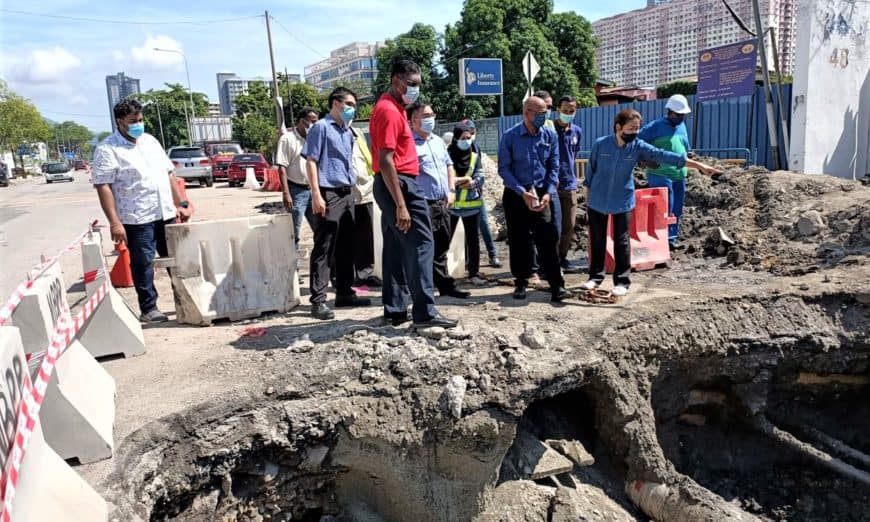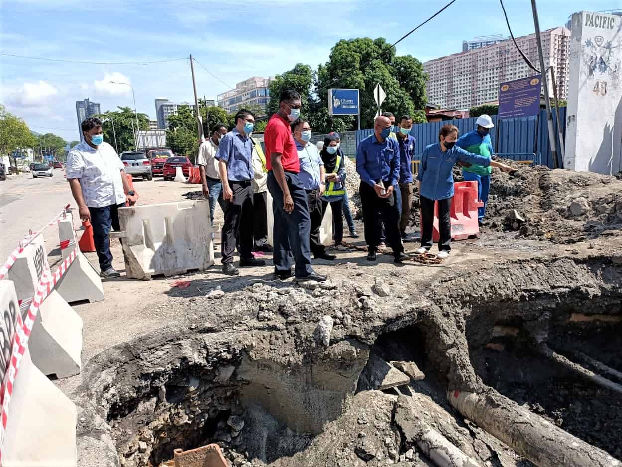 日落洞区国会议员雷尔、双溪槟榔区州议员林秀琴、市议员邓智伟,联同英达丽水公司、国家能源公司、槟州供水机构、槟岛市政厅等单位深表关注,今日前往巡视。英达丽水公司代表答允会加速工程进度,并希望天气良好,未来一周内可完工。