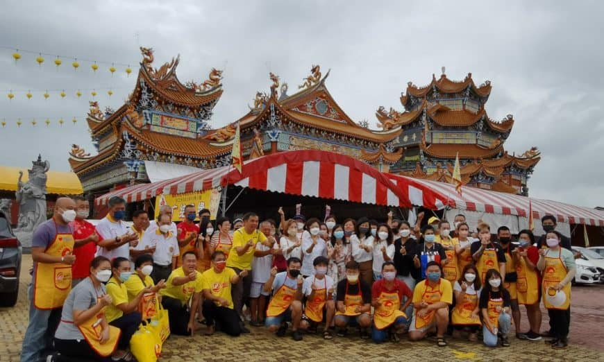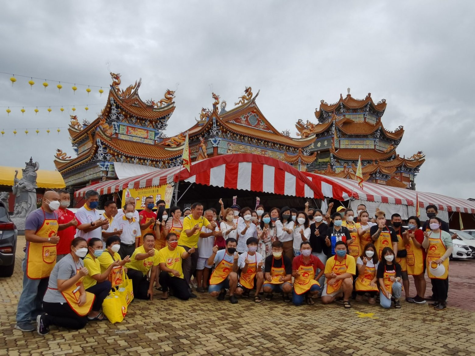 他们一行人是于周四早,前往当地移交有关围裙予40档临时素食小贩,并和商贩进行交流及品尝斋素美食。