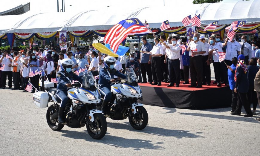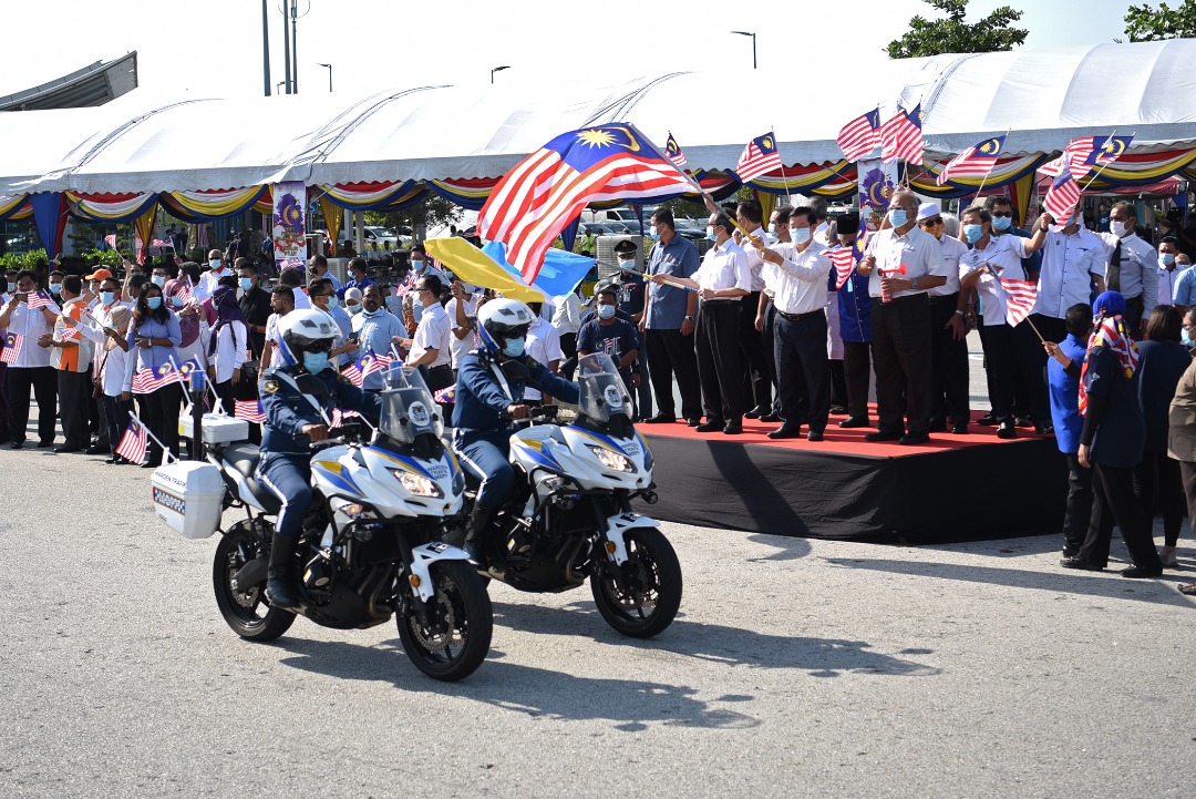 仪式上,首长也移交国旗予各个政府部门,并在稍后为国庆月车队游行主持挥旗仪式。