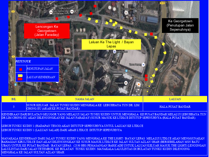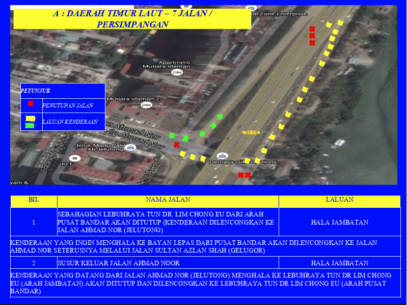 若民众在当天于现场面对交通阻碍问题,可拨电04-2221721、04-2221723或通过whatsapp号码012-4900999做出投诉。