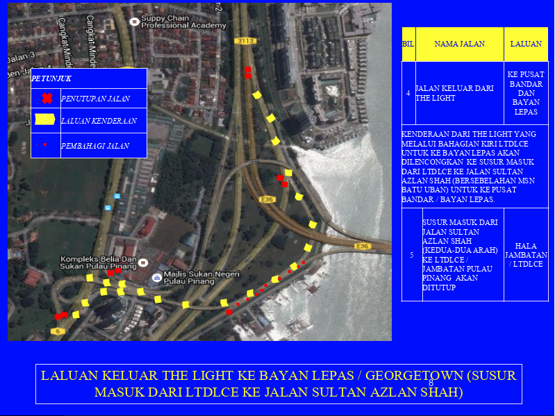 旺沙鲁丁指出,警方已规划了替代道路路线供民众使用,并促请民众,特别是欲往槟城国际机场乘搭飞机者提早计划行程,避免因交通封路或改道而延误行程。