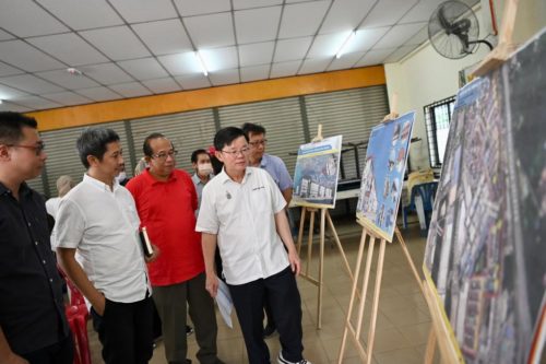槟州首长曹观友周日下午在武吉丁雅州议员魏晓隆等的陪同下到来巡视,以了解工程进展,并聆听槟州发展机构副执行长罗斯兰的汇报。