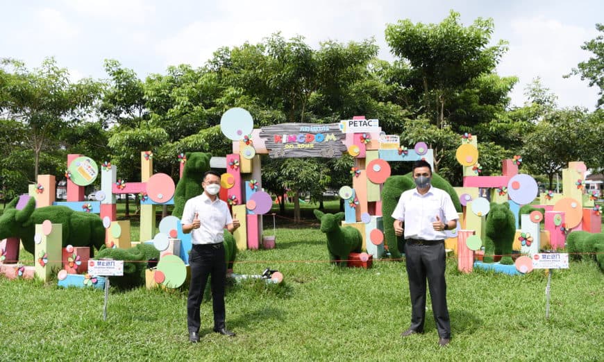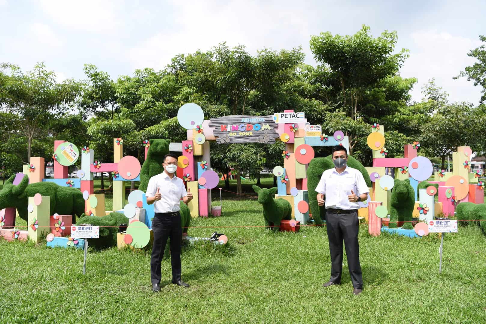 “动物”闯入住宅区?非也,这是在高渊美德花园(Taman Belatuk)草场上展出的“动物王国主题公园”,展示大象、熊、牛等动物园艺品。