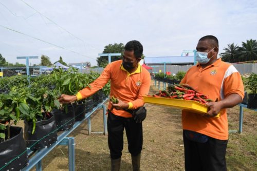 他说,该中心7月初种植1100株古来辣椒苗,预计可在30天后收成,并通过自我维持模式,将收成供应给批发商和杂货店,以确保中心的运作。