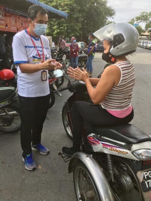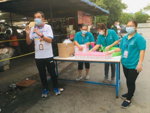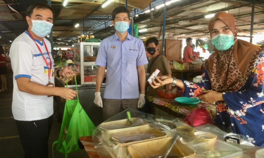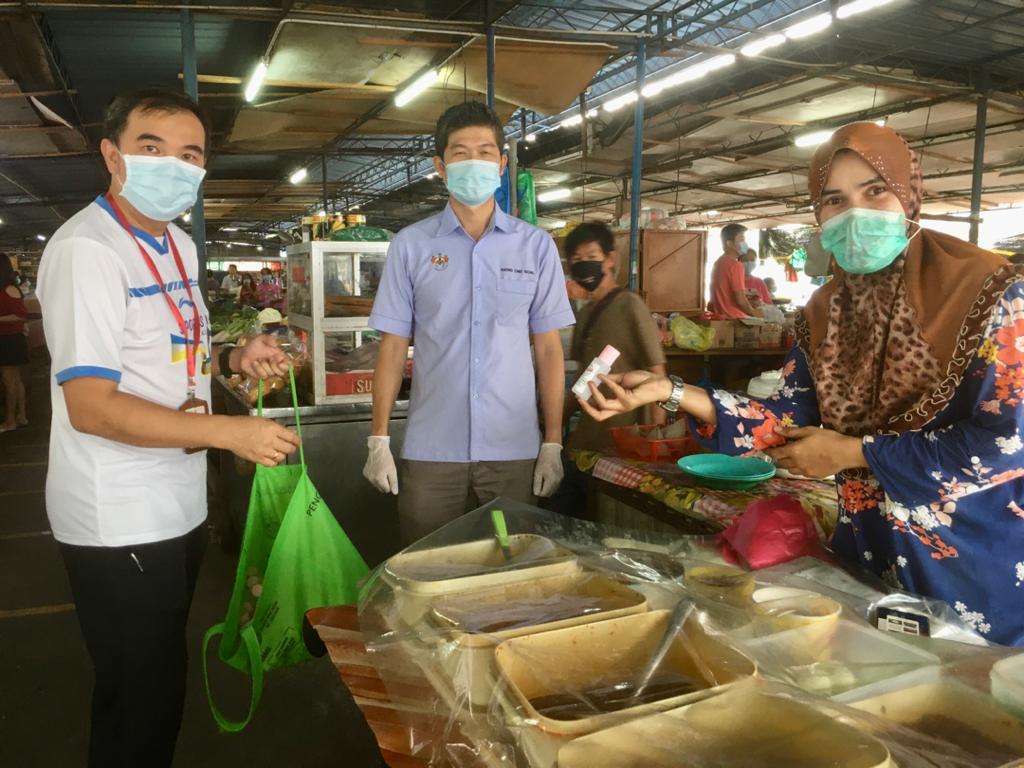 新冠肺炎肆虐,人人需做好防护措施,勤洗手可预防传染,峇眼惹玛区州议员孙意志今早率领服务队成员,前往麦曼珍巴刹分发800罐洗手液予民众,鼓励大家在这关键时刻勤洗手。