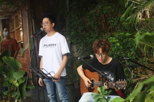 由“受力”组合开场,这是苏勇杰和苏勇顺的兄弟唱作组合,他们的轻摇滚曲风马上吸引了现场观众投入音乐氛围。