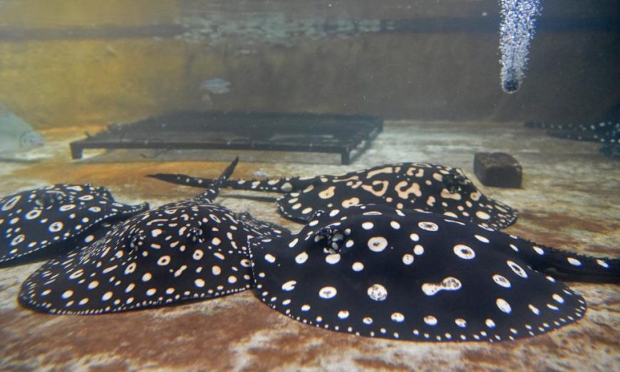 “淡水魟鱼分布在南美洲,包括委内瑞拉、巴西和秘鲁等,位于亚马逊河流域的国家,它们对水质很敏感,所以我们在饲养时,必须要很小心这些细节,在售卖给客户后,我们也会依据客户要求,给予饲养的指点。”