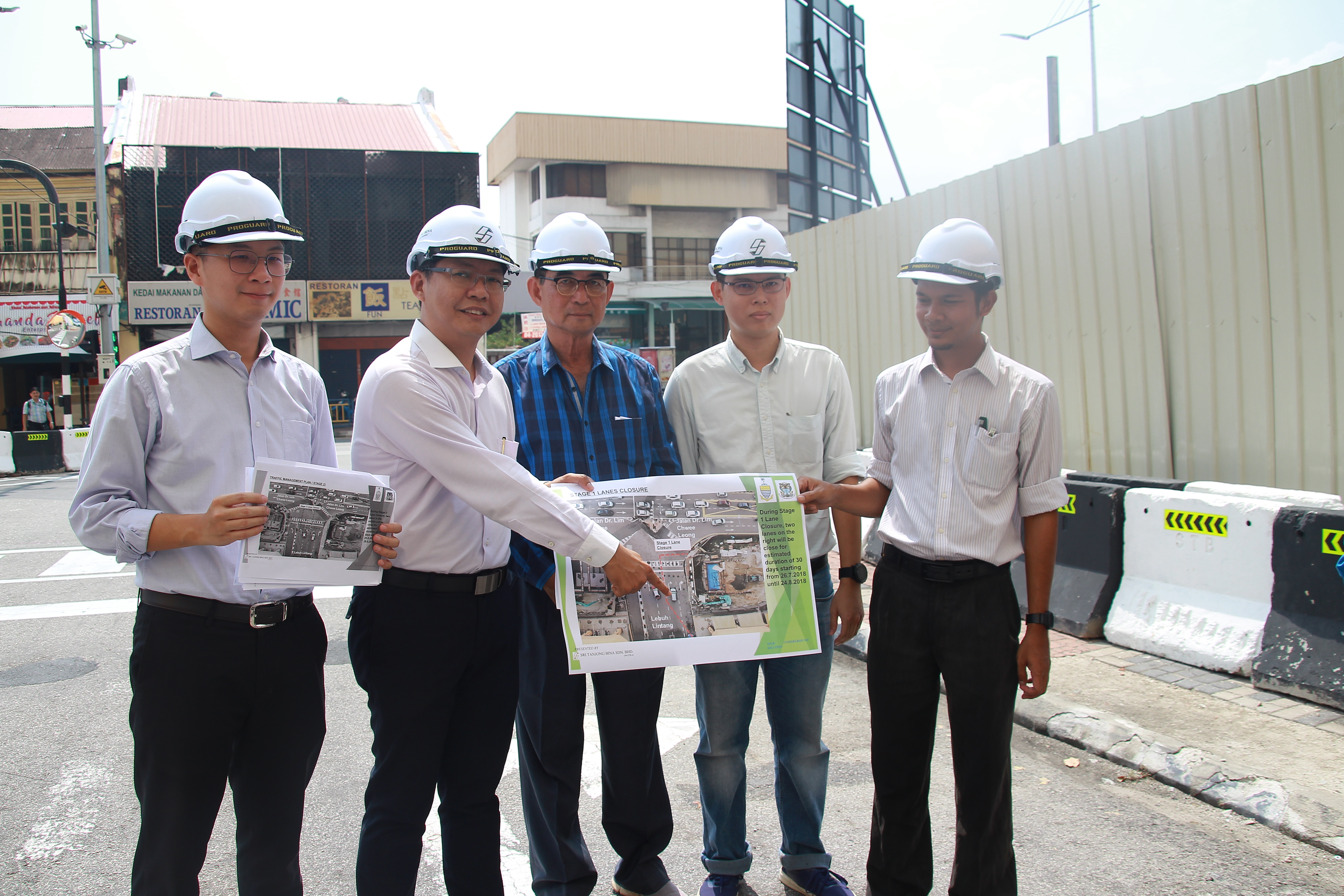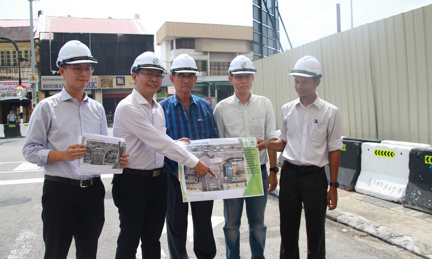 槟岛市政厅将于新光大林当路段展开阶段性封路,以提升S10治水计划工程。左2为郑来兴。