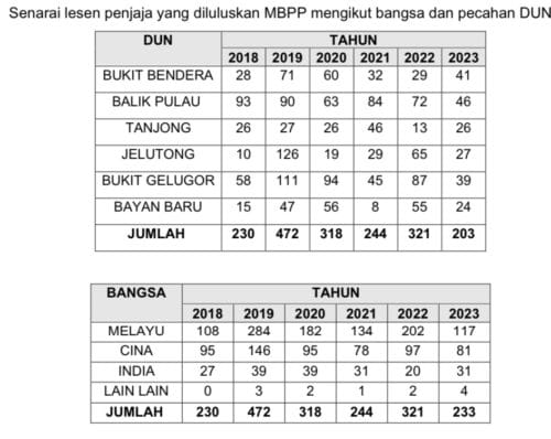 另外,槟州政府今年至今共发出203张小贩执照,其中浮罗山背(46张)、升旗山(41张)、武吉牛汝莪(39张)、日落洞(27张)、丹绒(26张)、峇央峇鲁(24张)