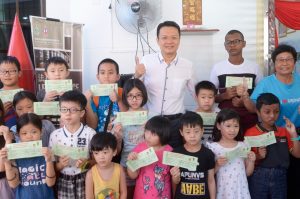 垄尾区州议员杨顺兴今日分发免费新校服及校鞋予清寒家庭孩子,以减轻家长的经济负担。