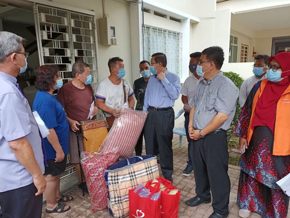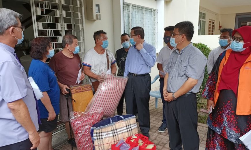 升旗山脚妙香林寺附近的红毛丹园(Jalan Pokok Saga)双层排屋2单位今日凌晨失火,亚逸布爹区州议员林冠英、亚依淡区州议员黄顺祥、升旗山区国会议员黄汉伟及相关单位,今天下午前往慰问灾民,并移交总额1万零300令吉援助金及必需品。