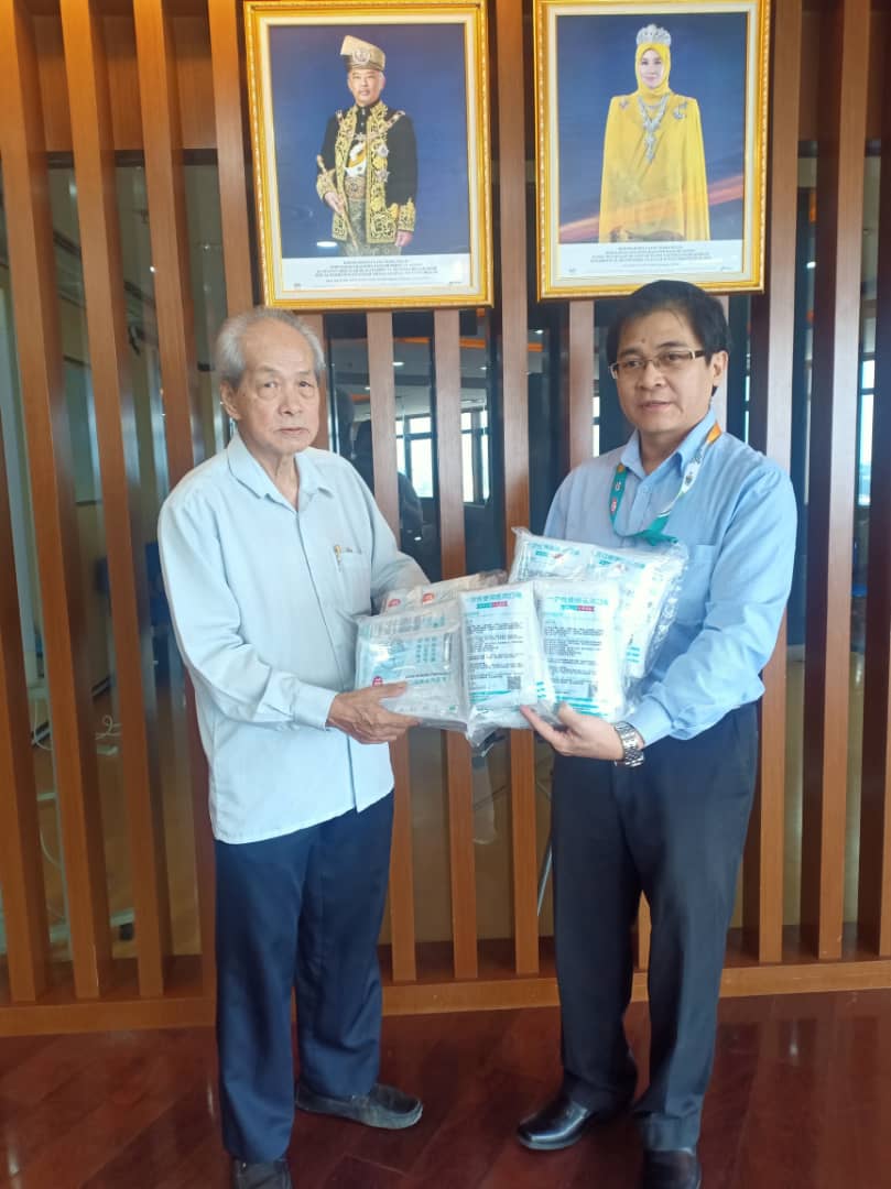 少山实业有限公司、广东少山国际贸易有限公司暨少山武术筋络医疗中心董事主席拿督林少山,以及少山武术筋络医疗中心名誉主席丹斯里林玉唐,联合捐赠2000个医用口罩予槟州政府,让州政府转交予前线人员。由首长机要秘书黎汉明接领。