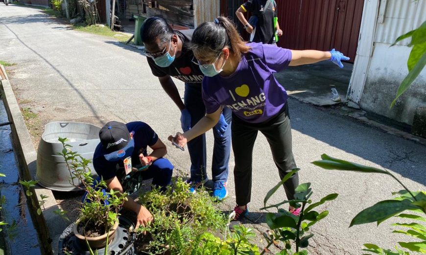 双蚊症(骨痛热症及基孔肯雅症)近期肆虐槟城,双溪槟榔州议员林秀琴日前在州卫生局、槟岛市政厅及乡村社区委员会的配合下,动员走入武吉南玛木屋区,展开“搜寻及毁灭”行动。