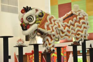“舞狮考验队员们的耐性、集中力及敏捷的身手,而高桩舞狮表演中的高难度动作,更是最有看头的地方,也就是最讲实力的表演。“