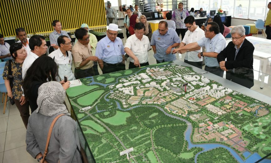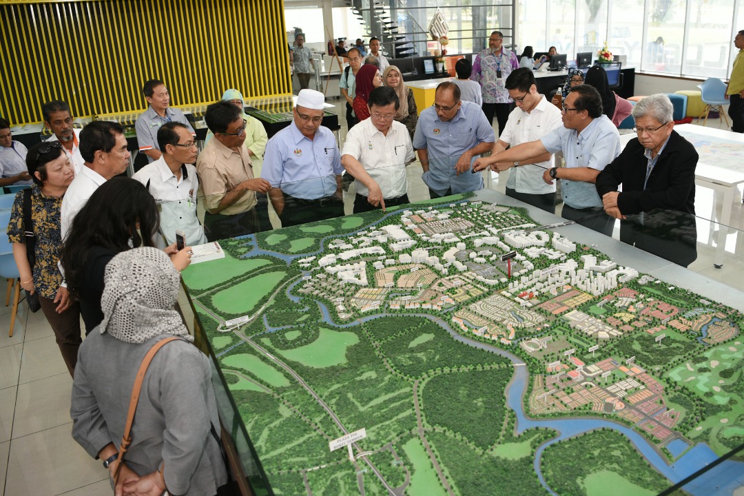曹观友今早率领官员走访当地,聆听槟州发展机构副总经理莫哈末峇兹汇报桂花城发展大蓝图发展进度。