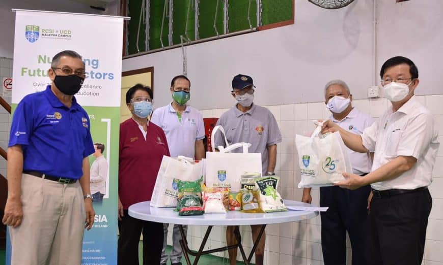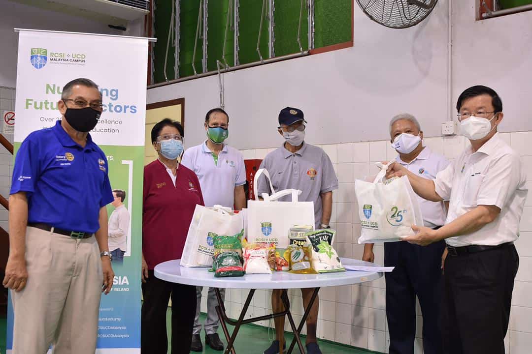 疫情肆虐下,许多人生活陷困,槟州非政府组织纷纷挺身而出,向贫户伸出援手,槟城扶轮社与其青年服务团(Rotaract Club of Penang )、RUMC医学院以及牛干冬乡村社区管理理事会,众志成城,即日起联手派食物袋予有需要家庭。