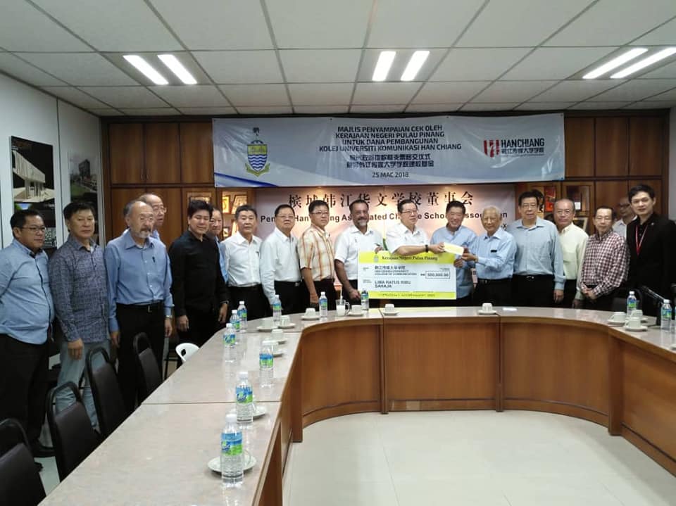 槟州政府贯彻“讲到做到,钱马上到”的政策,槟州首席部长林冠英移交50万令吉支票予韩江传媒大学学院,充为韩大发展基金用途。