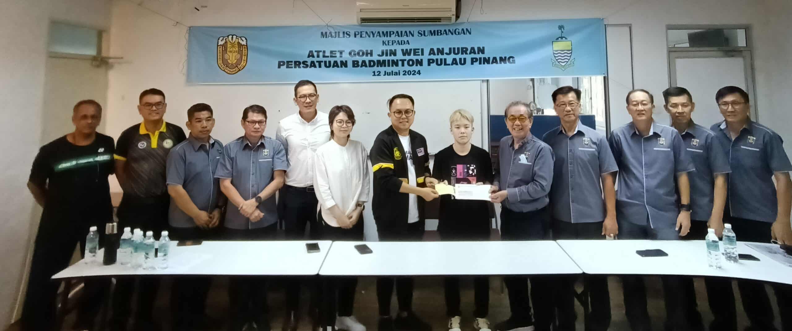 掌管体育事务的魏子森行政议员,在记者会上移交5000令吉予吴堇溦,槟州羽总会长拿督许庆吉则移交2万令吉。