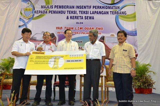 林冠英出席东北县德士及出租车司机奖励金颁发仪式时说,州政府所分发每年600令吉奖励金,会分为上半年(1月)及下半年(7月)每次300令吉发,放给州内的2000名德士司机。