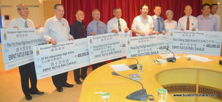 槟州民联政府兑现承诺,自执政槟州以来,第6年制度化拨款槟城菩提、韩江、日新、钟灵及槟华等5所独中各40万令吉,以协助各独中提升校内硬体设施。