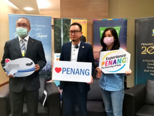 他周四在机场迎接从台湾到来的游客后,在记者会上说,中华航空及星宇航空每周将有4个航班来往两地,预料之后将会有更多台湾游客访槟。