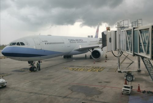 台湾今日起放宽防疫措施,槟城国际机场迎来首批搭乘中华航空到来的游客。