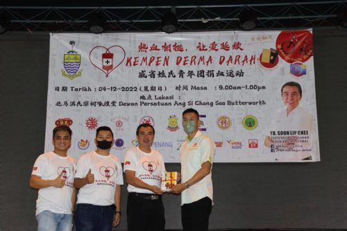 “此外,“热血相挺,让爱延续“ 捐血活动意义重大,这是槟城发展机构连同我的办公室(青年及体育行政办公室及服务中心)首次与八大姓氏青年团及各个组织联手举办的一项活动。明天12月5日是国际义工日, 今天前来协助的工作人员有超过50位,在场的他们都是来自不同非政府组织(NGO)的志工,从数个月前就开始为今天的活动进行筹备,他们贡献自己的力量为社会付出,非常值得赞许。”