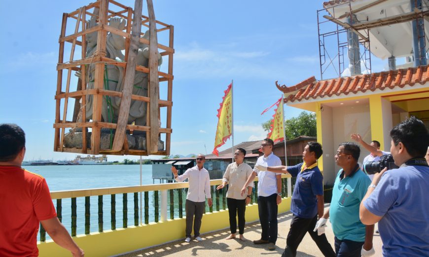 著名的全马首间海上南海观音庙槟城玄母殿再有新壮举,以巨型铁船从槟城海域运入6尺“哼哈二将”金身,并定制33尊观音法相,成为区内首间集全所有观音法相的庙宇。
