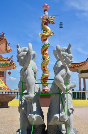 他透露,该殿扩建计划和定制神像共花费85万令吉,其中这些石制神像都是从福建泉州定制,而哼哈二将终于在21日正式运入该殿进行安装。