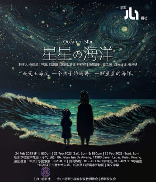 《星星@海洋》将于本月24日晚上8时30分、25日下午3时及晚上8时30分、26日下午3时在明新小学演出,全程以中文为媒介语,但也设有英文字幕。