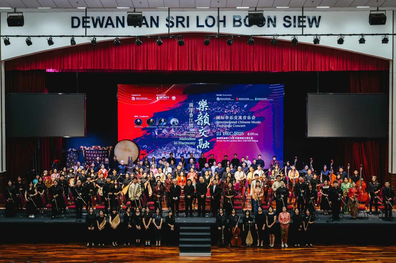 岁末冬至之夜,槟城拉曼理工大学 丹斯里骆文秀礼堂乐声悠扬,《南洋香江情·乐韵交融》国际华乐交流音乐会在槟州旅游及创意经济行政议员黄汉伟的致词与鸣锣仪式后隆重掀开序幕,为音乐爱好者献上一场水准卓越、气势磅礴的华乐盛宴。