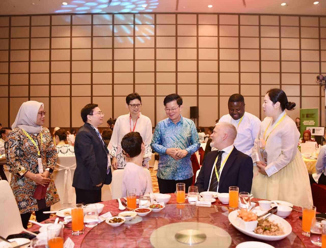 各国代表穿上民族服装赴会,让宴会现场百花齐放,大会也安排舞狮迎宾、马来音乐、东马土著音乐表演等,展现我国多元文化一面,让代表们大开眼界。