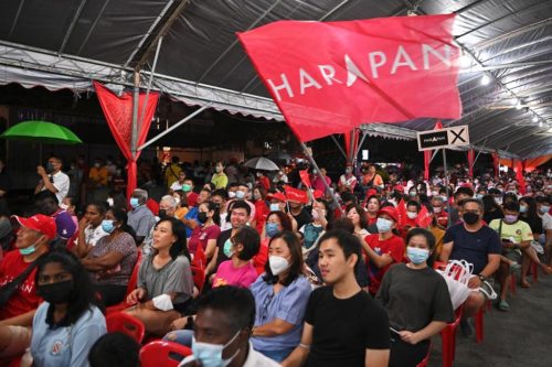 大雨浇不息“希望”,逾千民众冒雨聆听希盟位于柔府村的大型政治讲座,“Kita Boleh”口号响彻云霄!